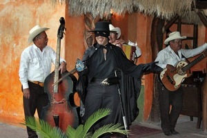 We returned to the entrance of the Posada del Hidalgo, walked up the lengthy ramp and entered the area by the bar. A poster by the bar announced that Zorro was going to be present before dinner tonight along with a Fiesta Mexicana.